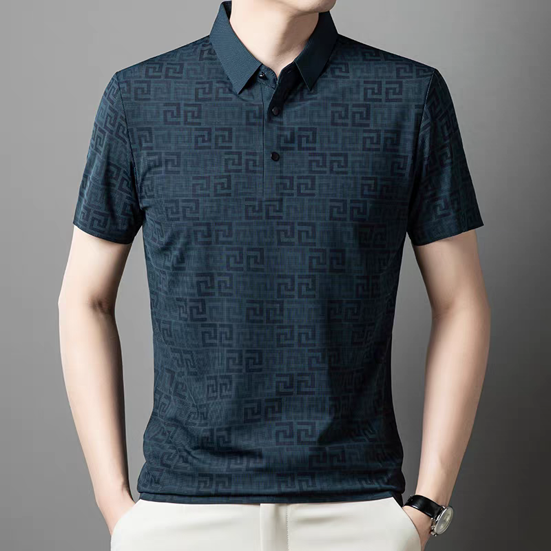 Men’s Navy Blue Geometric Pattern Polo T-Shirt - Goamen