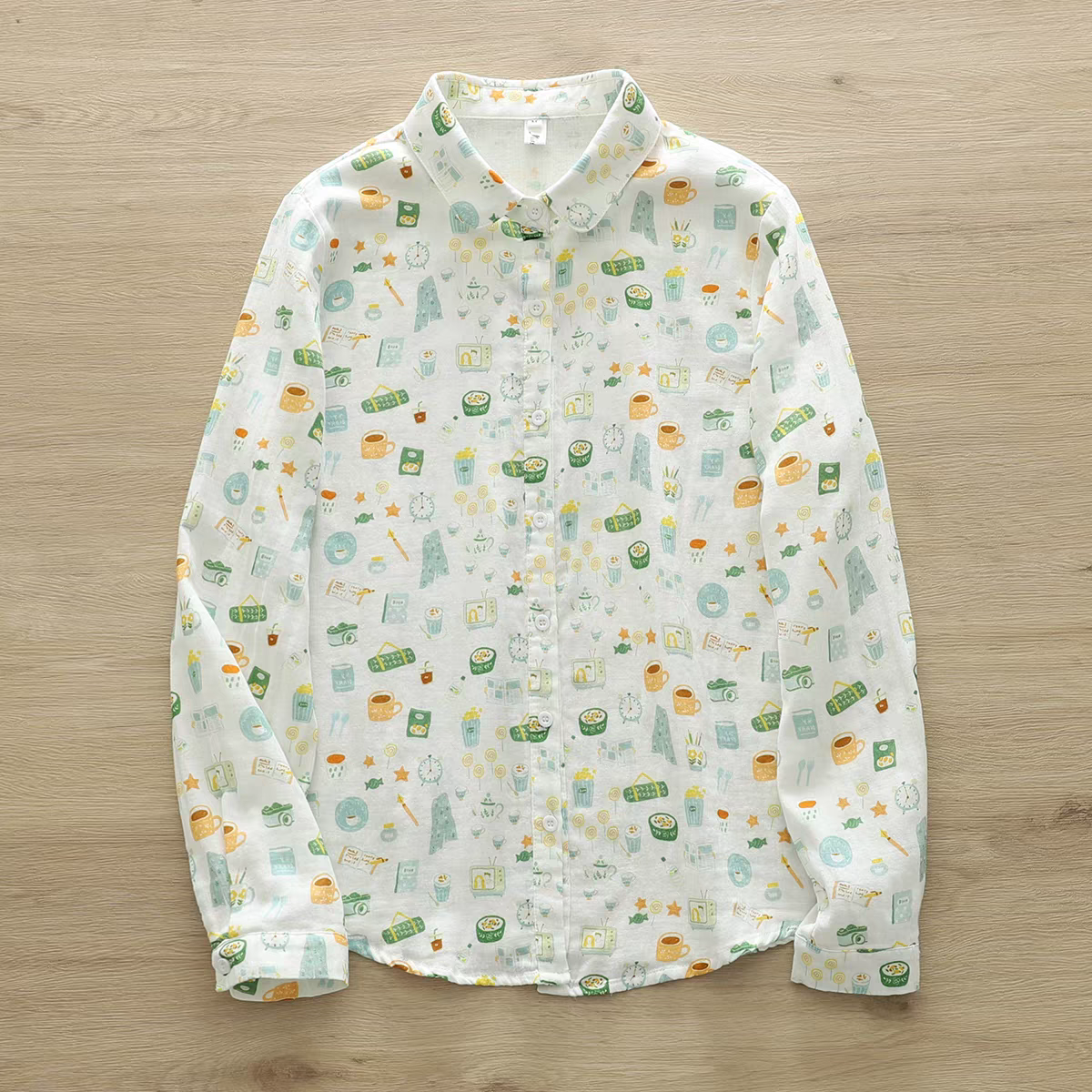 Men's Cotton Linen Printed Shirt Regular Fit Full Sleeve Shirts - Goamen