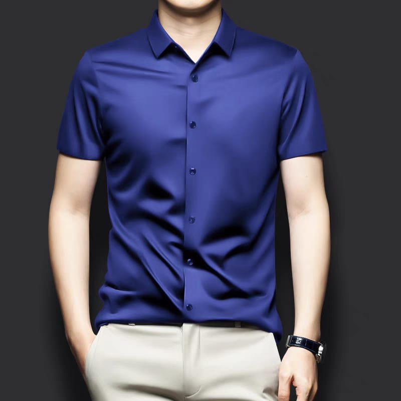 Men's Navy Shartin Half Sleeve Shirt - Goamen