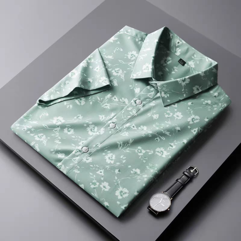 Men's Pista Green Flower Printed Regular Fit Shirt - Goamen